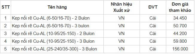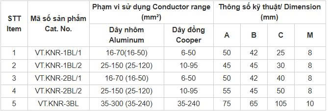 Thông số kỹ thuật kẹp cáp đồng nhôm Quảng Ngãi